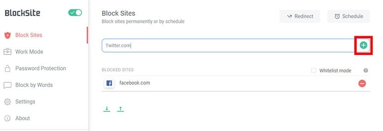 یکی از سادهترین راهها برای مسدود کردن وبسایتها در کروم، دانلود افزونه Block Site از فروشگاه وب کروم است. سپس میتوانید وبسایتها و کلمات کلیدی خاصی را که میخواهید مسدود کنید، اضافه کنید و روی علامت سبز مثبت کلیک کنید.
