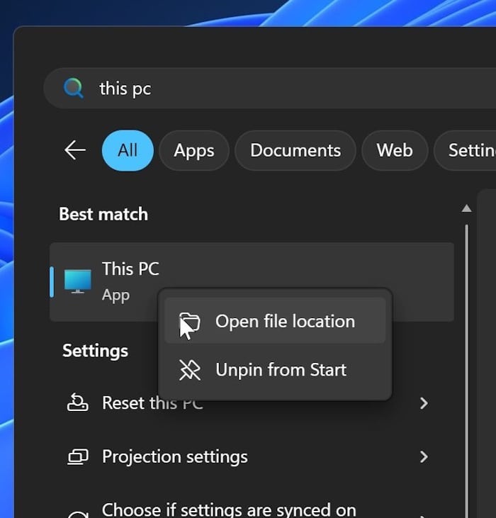 ایجاد میانبر This PC در دسکتاپ ویندوز ۱۱ از طریق جستجو
