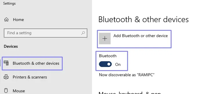 مرحله ۳. اکنون در رایانه شخصی خود به تنظیمات > دستگاهها > بلوتوث و سایر دستگاهها ( ویندوز ۱۱: تنظیمات > بلوتوث و دستگاهها ) بروید.