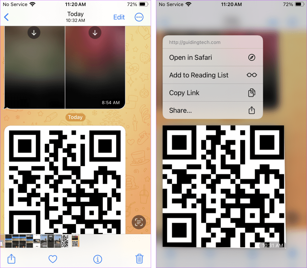 • برای آیفون، تصویر کد QR را در برنامه Photos باز کنید و کد QR را به مدت طولانی فشار دهید.