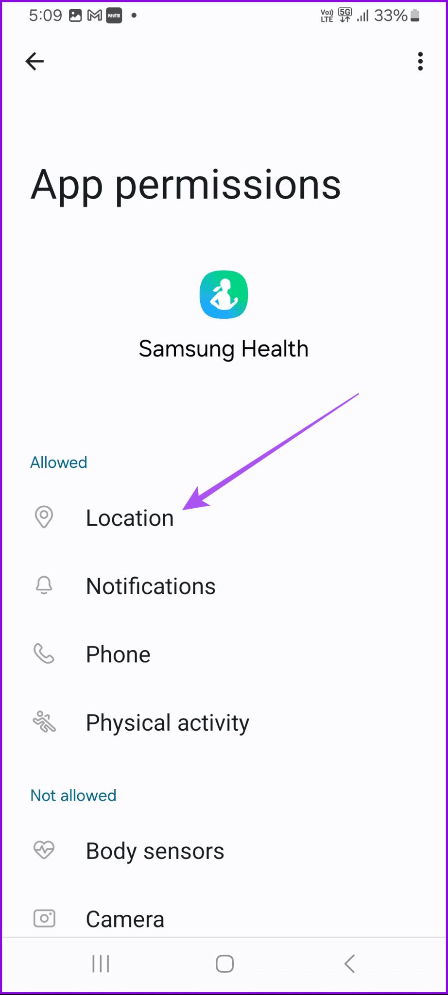 راه حل بعدی این است که مطمئن شوید به برنامه دسترسی ردیابی موقعیت مکانی خود را داده‌اید. تنها در این صورت است که می‌تواند تعداد قدم‌های شما را در یک روز ثبت کند.