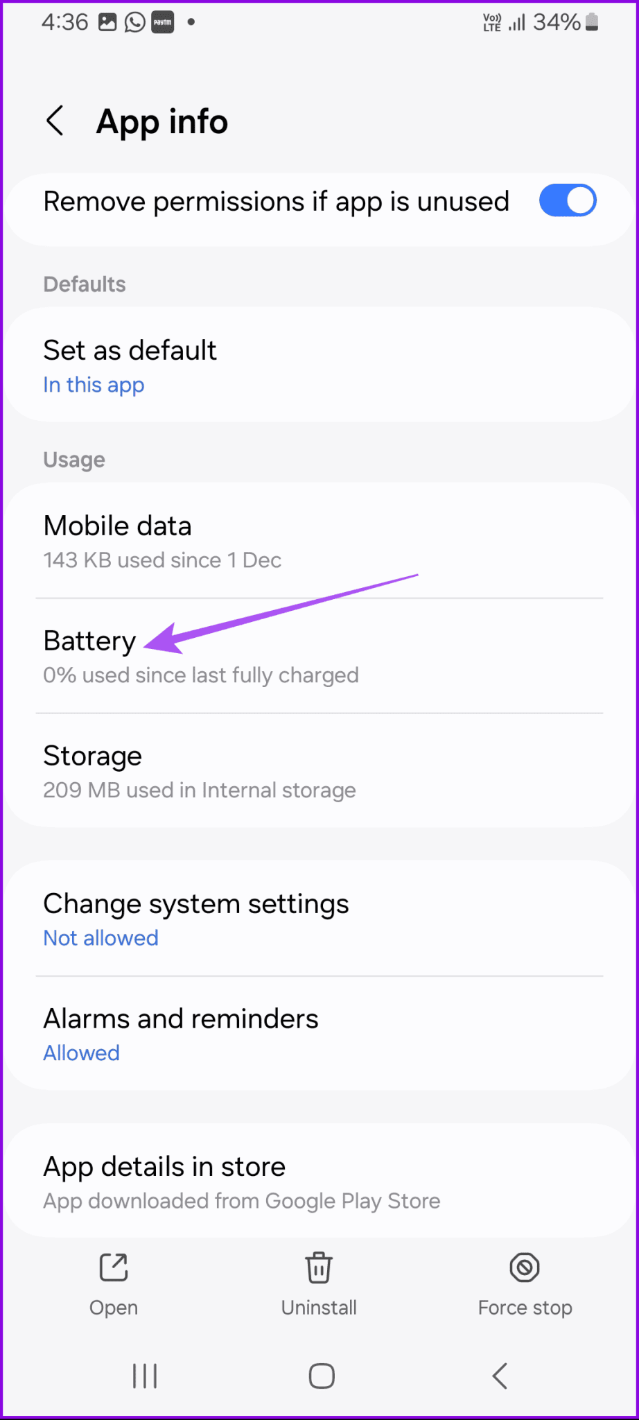مرحله ۳: روی باتری > دسترسی نامحدود ضربه بزنید.