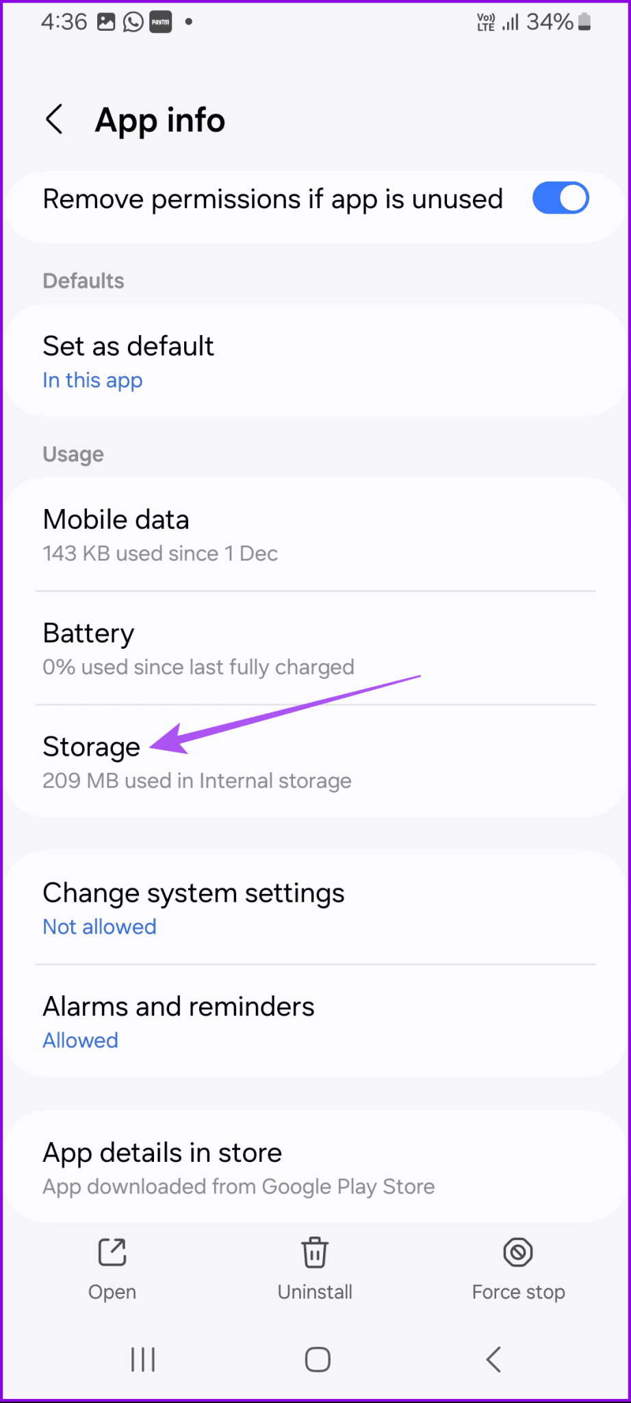 اطلاعات برنامه سلامت > فضای ذخیره‌سازی > پاک کردن حافظه پنهان را باز کنید