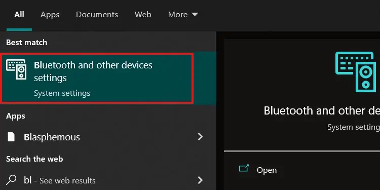 - عبارت «بلوتوث» را در نوار جستجوی ویندوز تایپ کنید.