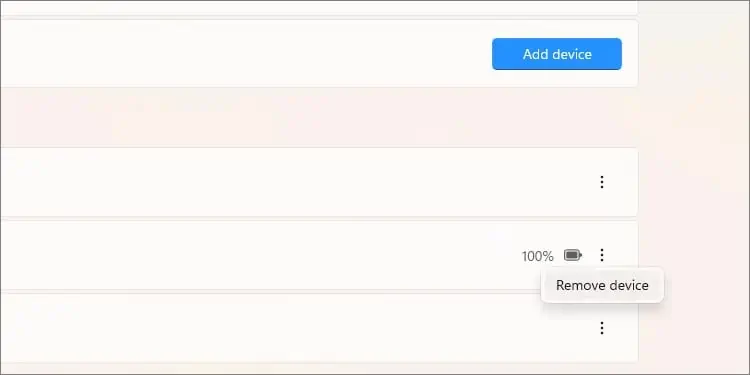 - دسته بازی را در لیست لوازم جانبی پیدا کنید، روی سه نقطه آن کلیک کنید و گزینه Remove Device را انتخاب کنید .