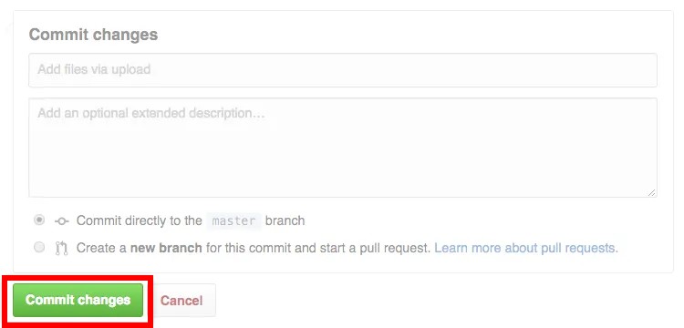 - تغییرات خود را انجام دهید: پس از افزودن یا ویرایش فایلها در مخزن خود، باید تغییرات خود را برای ذخیره آنها انجام دهید. برای انجام این کار، روی دکمه “Commit changes” در پایین صفحه کلیک کنید. همچنین میتوانید یک پیام commit برای توضیح تغییراتی که ایجاد کردهاید اضافه کنید.