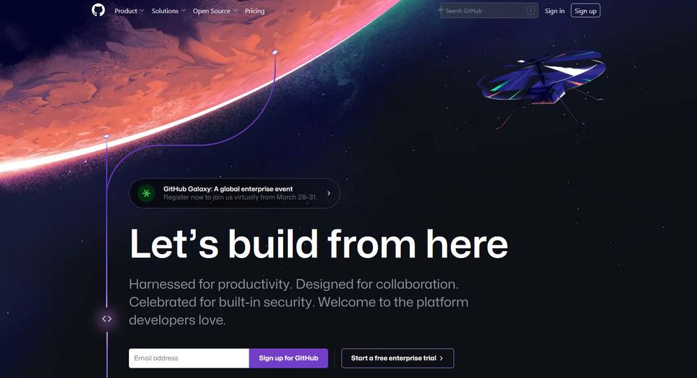 - ایجاد یک حساب GitHub : به صفحه اصلی GitHub بروید و با ارائه آدرس ایمیل، نام کاربری و رمز عبور خود برای یک حساب کاربری جدید ثبت نام کنید. از طرف دیگر، میتوانید با استفاده از حساب Google یا Microsoft موجود خود ثبت نام کنید.