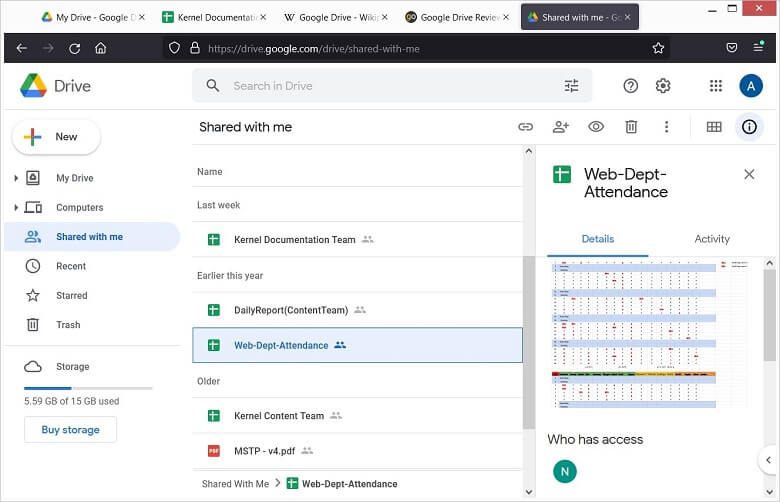 - با MS Office Suite سازگار است. بنابراین، میتوانید اسناد Word و Excel خود را در Drive نیز باز کنید.