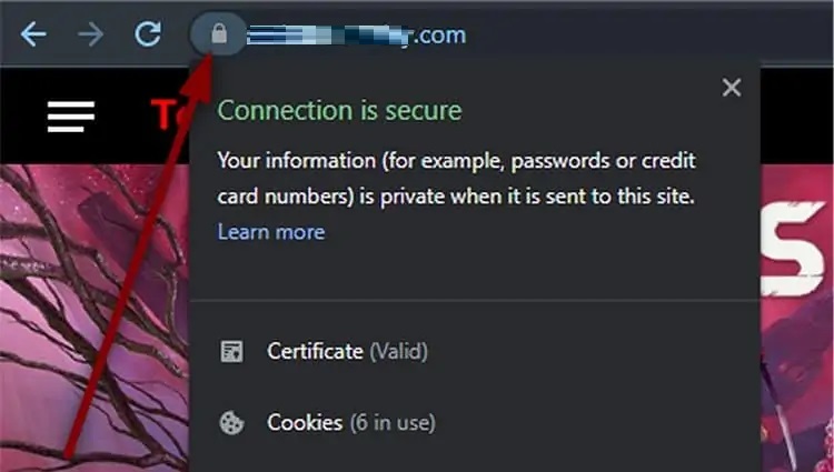 - روی دکمه قفل کنار آدرس وبسایت کلیک کنید.