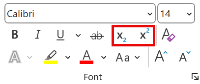 یکی از سریعترین راهها برای اضافه کردن کاراکترهای بالانویس یا زیرنویس از طریق نوار ابزار ورد است. میتوانید این کاراکترها را از تب Home در نوار ابزار در گروه Font پیدا کنید.