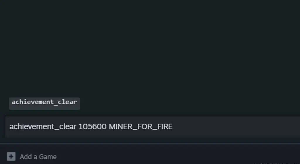 پس از بهدست آوردن AppID و نام Achievement، باید یک دستور خطی را در منوی Steam Console اجرا کنیم.