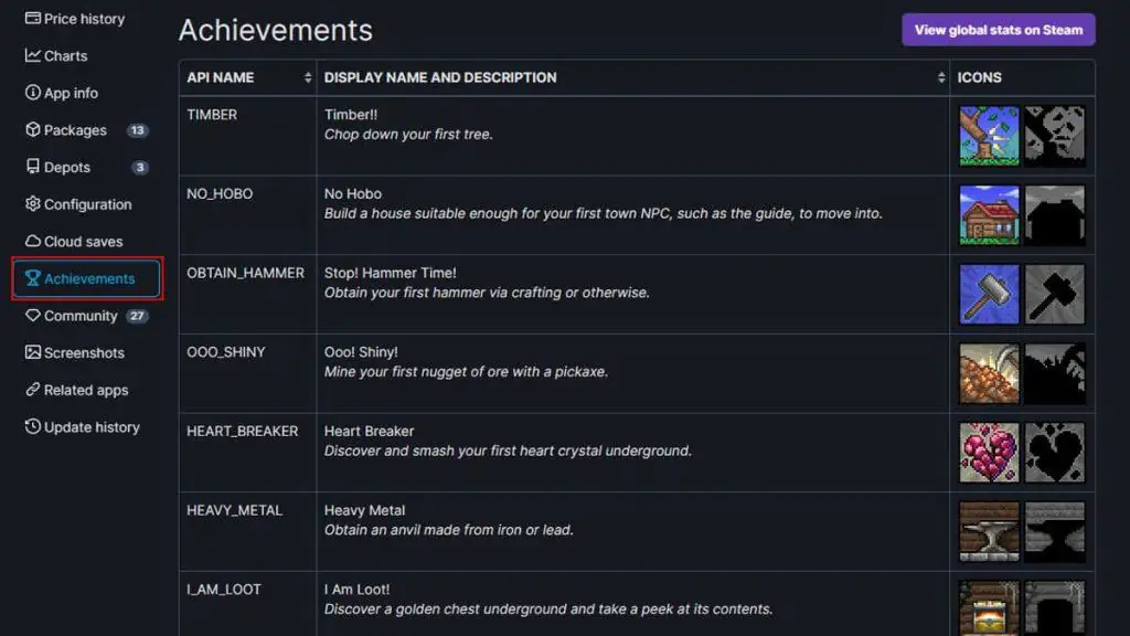 همچنین میتوانید از وبسایتهایی مانند SteamDB برای جستجوی AppID هر بازی و مشاهدهی نامهای API مربوط به Achievement استفاده کنید.