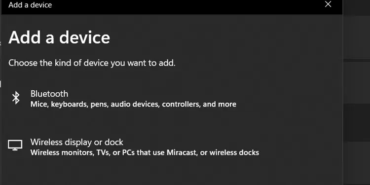 - Bluetooth را انتخاب کنید (نه “Everything Else” که در روش اتصال بیسیم استفاده شد).