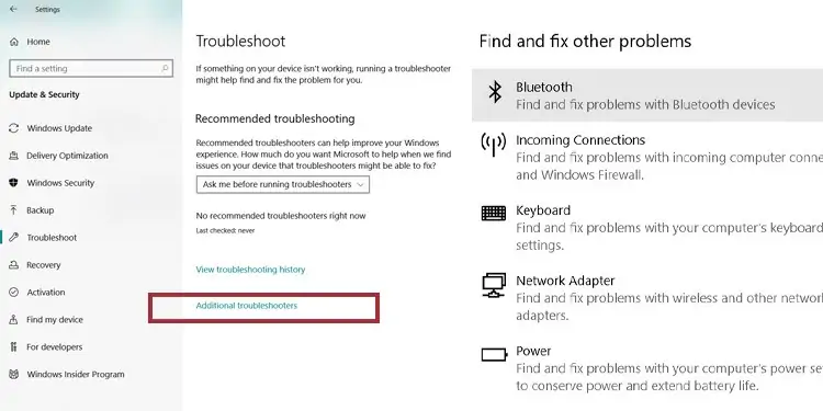 در پنل سمت چپ، Troubleshoot را انتخاب کرده و در سمت راست روی Additional troubleshooters کلیک کنید.