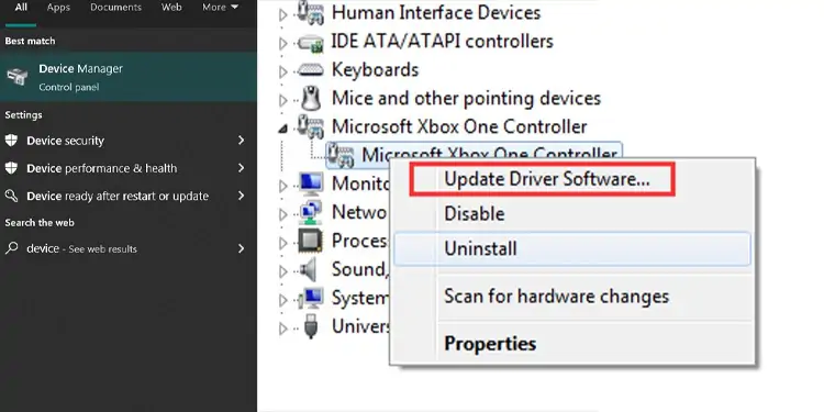 اگر مشکل از پورتها یا کابلها نبود، احتمال دارد درایور دسته Xbox خراب یا حذف شده باشد. برای بهروزرسانی: