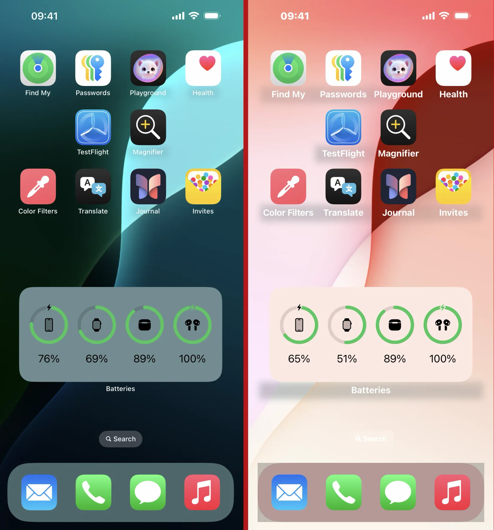 در ادامه میتوانید ببینید که با فعالکردن Bold Text، Larger Text و Smart Invert برای Home Screen & App Library چه اتفاقی رخ میدهد. اگر شما نیز چنین ترکیبی از تنظیمات را روی iPhone خود اعمال کنید، متوجه نکات زیر خواهید شد: