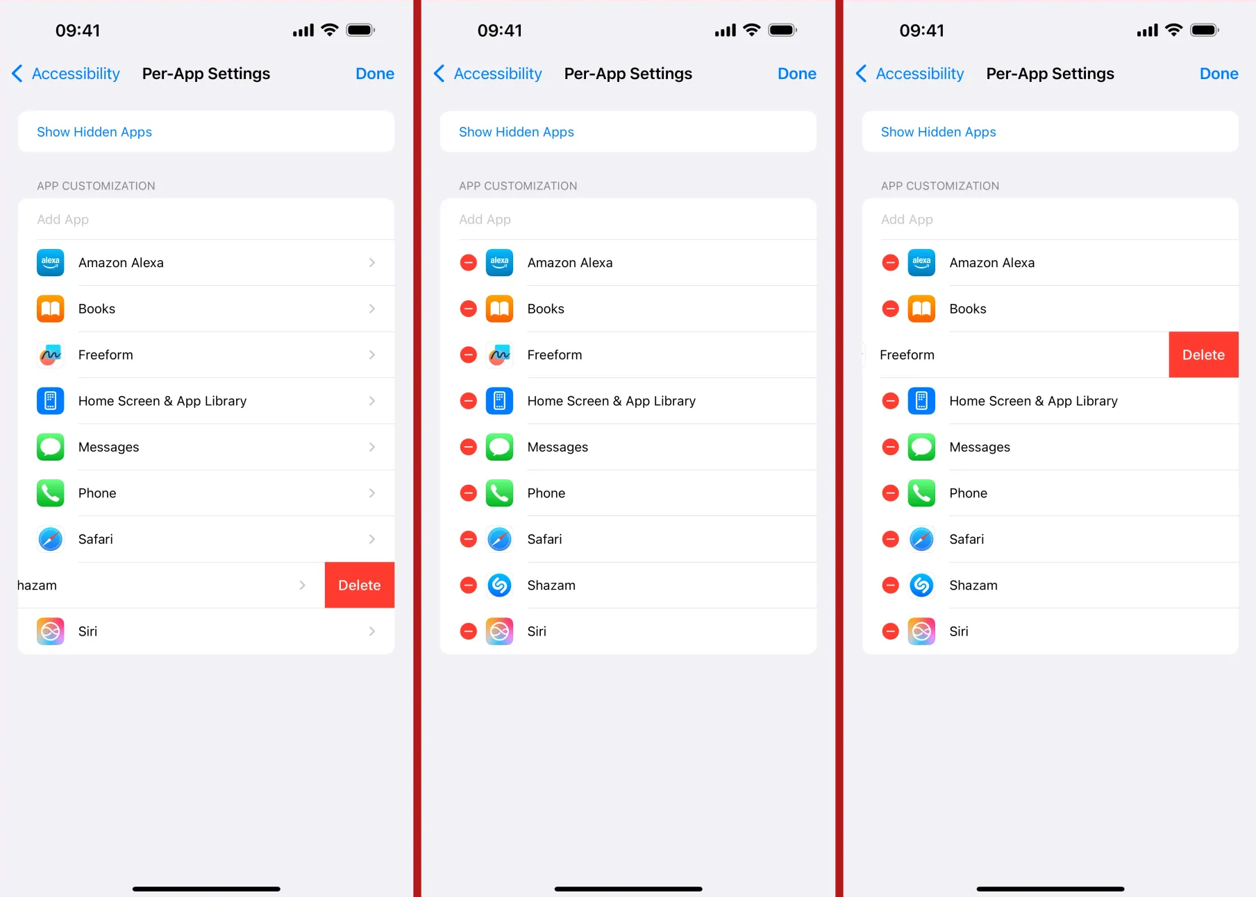حذف اپ از این بخش تمام تنظیمات سفارشی از جمله اندازه متن، Bold Text، کنتراست و سایر گزینهها را فوراً به حالت پیشفرض بازمیگرداند؛ روشی که بسیار سریعتر از تغییر تکتک گزینهها بهصورت دستی برای هر اپلیکیشن است.
