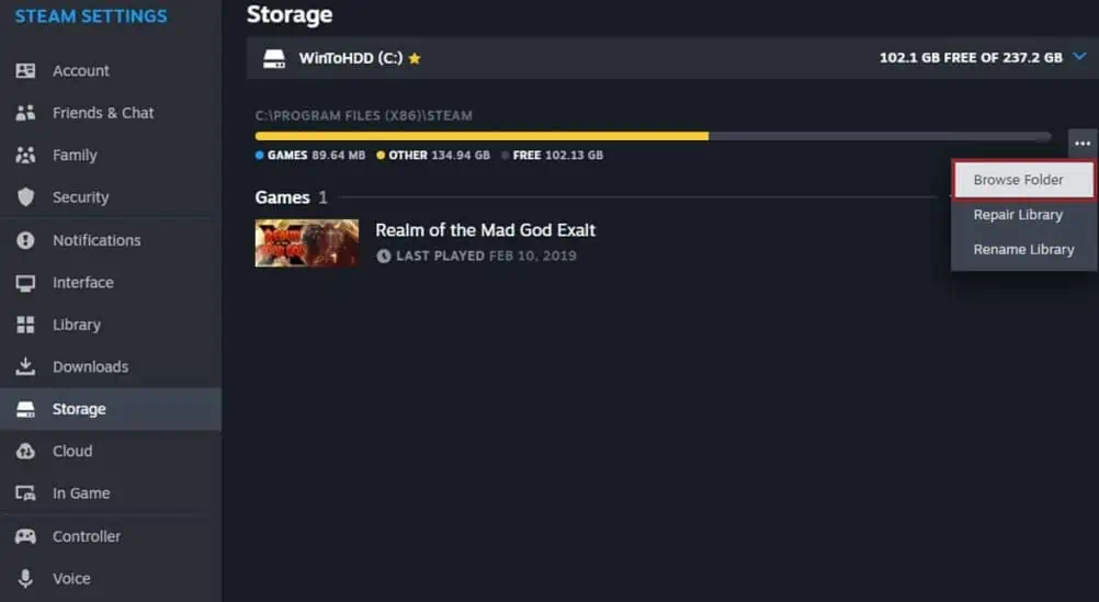 تعمیر پوشه Steamapps برای رفع خطای کمبود فضای دیسک