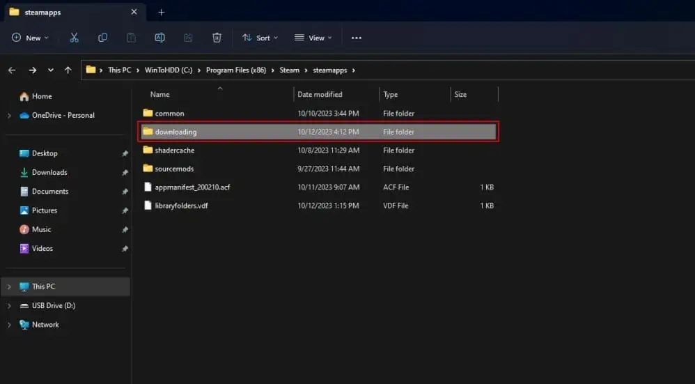 لتفرم Steam فایلهای موقتی و باقیماندهی دانلودهای ناقص یا شکسته را در پوشهی Downloading ذخیره میکند. این فایلها به مرور زمان حجم زیادی از فضای ذخیرهسازی شما را اشغال میکنند و در نهایت باعث بروز خطای Not Enough Disk Space در Steam میشوند.