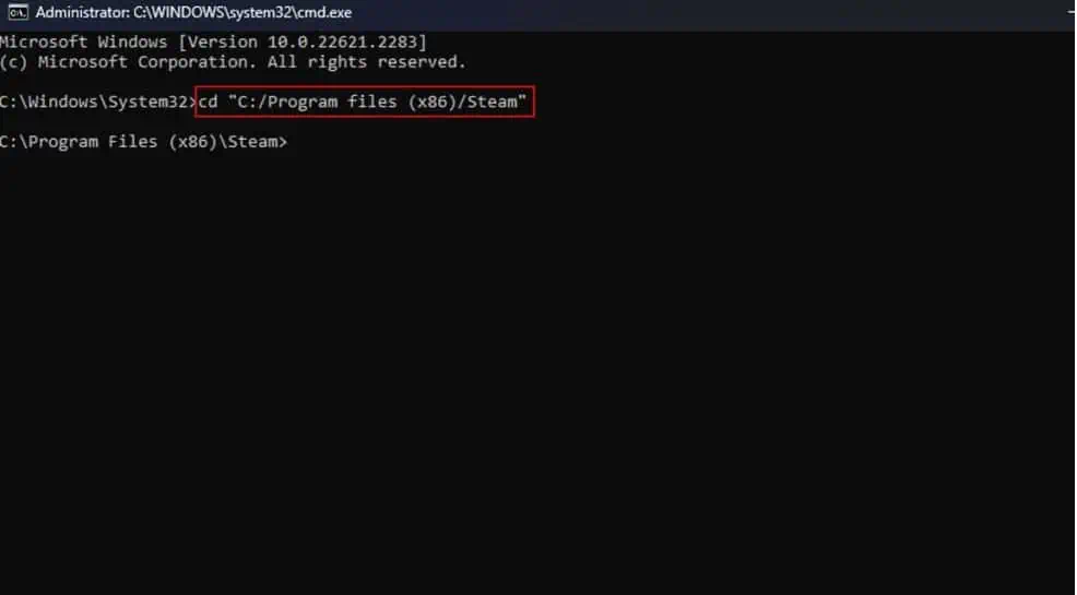 - برای ورود به پوشه اصلی Steam دستور زیر را وارد کنید: