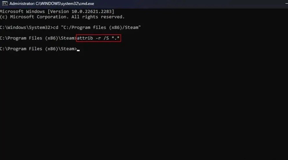 - این دستور سطح دسترسی همه فولدرهای داخل مسیر Steam را به حالت قابل خواندن و نوشتن تغییر میدهد. اکنون میتوانید بدون مشکل پوشه Downloading را حذف کنید.