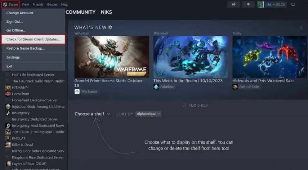 گزینه Check for Steam Client Updates را انتخاب کنید.