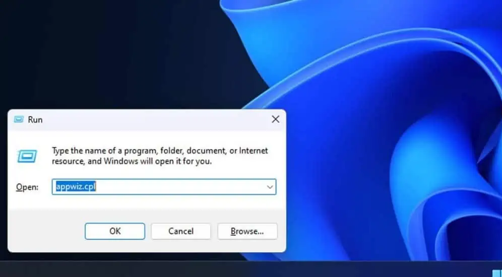 - با فشردن کلیدهای Windows + R پنجره Run را باز کنید و عبارت appwiz.cpl را وارد کنید تا وارد بخش Programs and Features شوید.