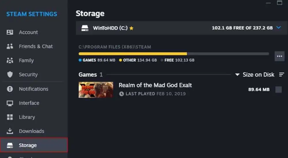 - وارد Settings در برنامه Steam شوید و به تب Storage بروید.