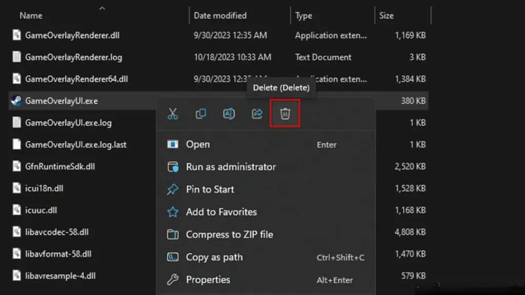 - فایل GameOverlayUI.exe را پیدا کرده و آن را حذف کنید.