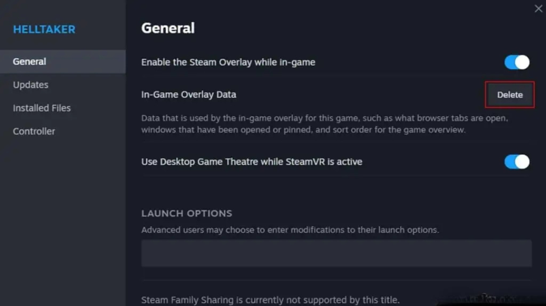 - در تب General، روی دکمه Delete در بخش In-Game Overlay Data کلیک کنید.
