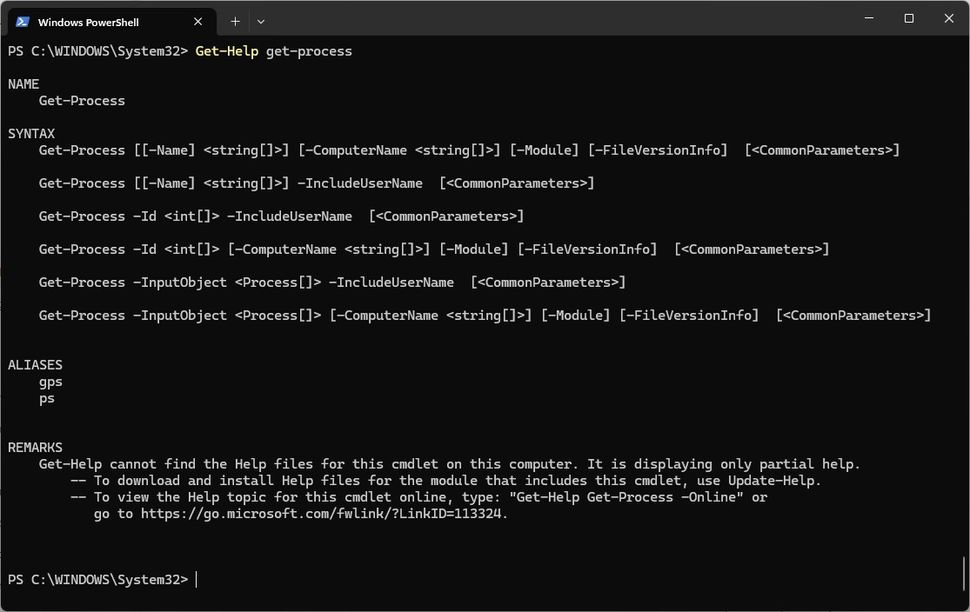 دستور Get-Help کلید شما برای باز کردن فایل‌های کمکی داخلی است که PowerShell آنها را پنهان کرده است. این دستور می‌تواند اطلاعات مربوط به cmdletها و سینتکس آنها را نمایش دهد.