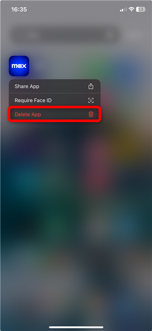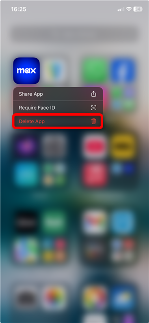 در مرحله بعد، در پنجره بازشو، گزینه حذف برنامه (Delete App) را انتخاب کنید.