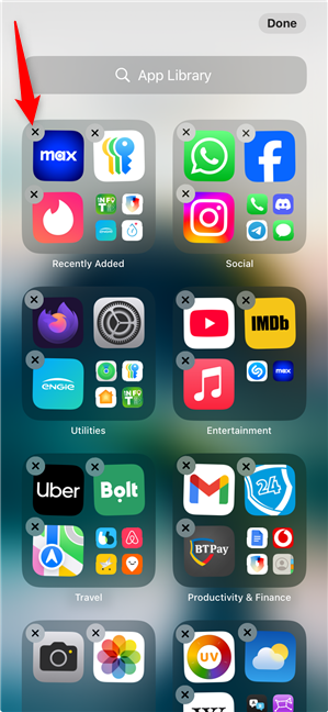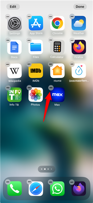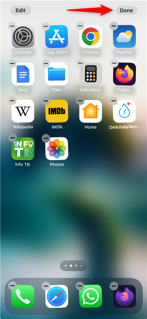 پس از حذف تمام برنامه‌هایی که می‌خواهید حذف کنید، برای خروج از حالت ویرایش، روی گزینه Done در گوشه بالا سمت راست کلیک کنید.