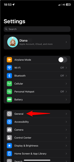در برنامه تنظیمات، روی ورودی عمومی (General) ضربه بزنید.