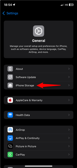 در مرحله بعد، به حافظه آیفون دسترسی پیدا کنید.
