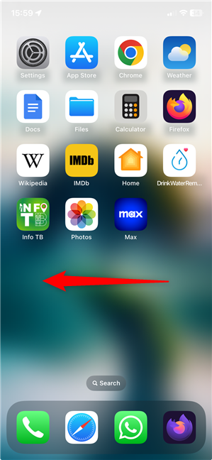 حتی اگر آیکون یک برنامه را از صفحه اصلی حذف کرده باشید، می‌توانید آن را در کتابخانه برنامه‌های iOS پیدا کنید. برای دسترسی به کتابخانه برنامه‌ها ، صفحه اصلی خود را به سمت چپ بکشید.