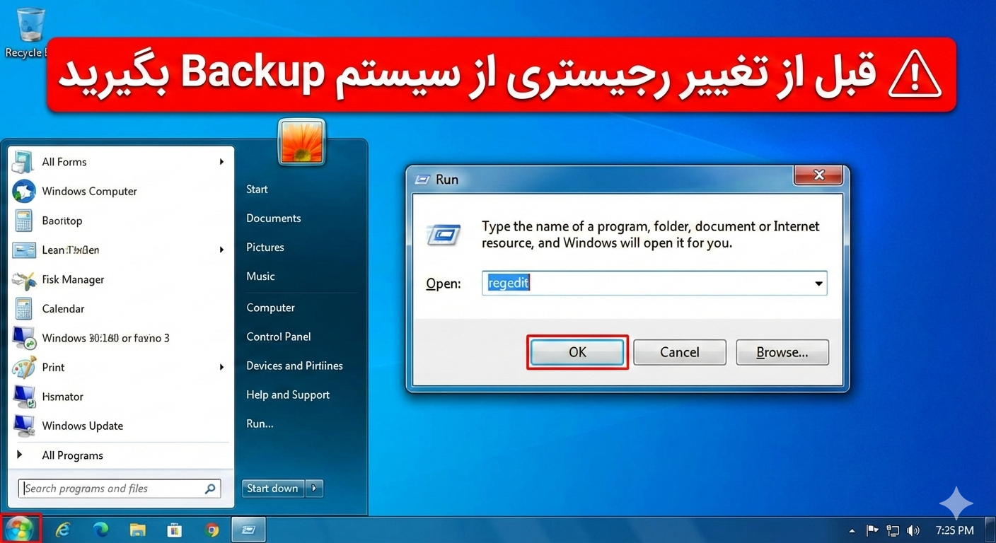 هشدار: قبل از تغییر رجیستری از سیستم Backup بگیرید