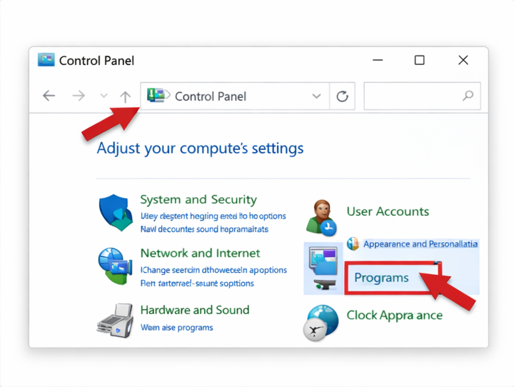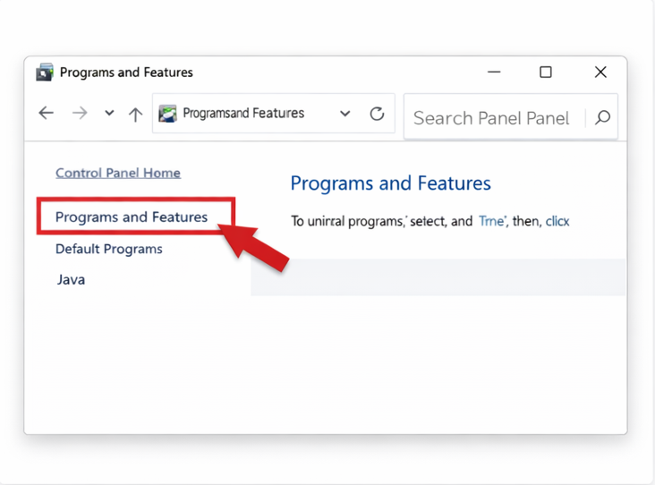 - روی Programs and Features کلیک کنید.