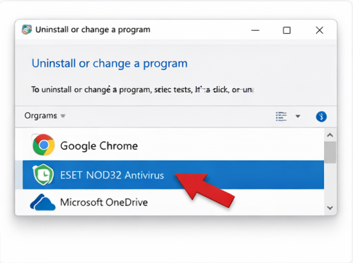 - گزینه ESET NOD32 Antivirus را پیدا کنید.