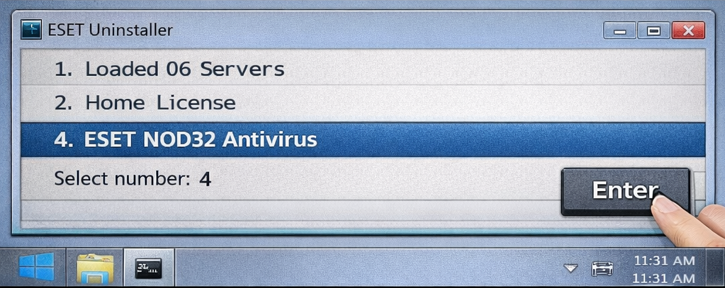 - عدد مربوط به NOD32 را انتخاب کرده و Enter بزنید.