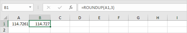 تابع ROUNDUP در Excel همیشه اعداد را به بالا (دور از صفر) گرد میکند. به این معنی که تمامی ارقام 1 تا 9 بدون استثنا به بالا گرد میشوند.