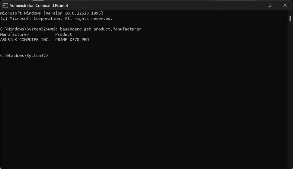روش دوم: استفاده از خط فرمان برای بررسی مدل مادربرد