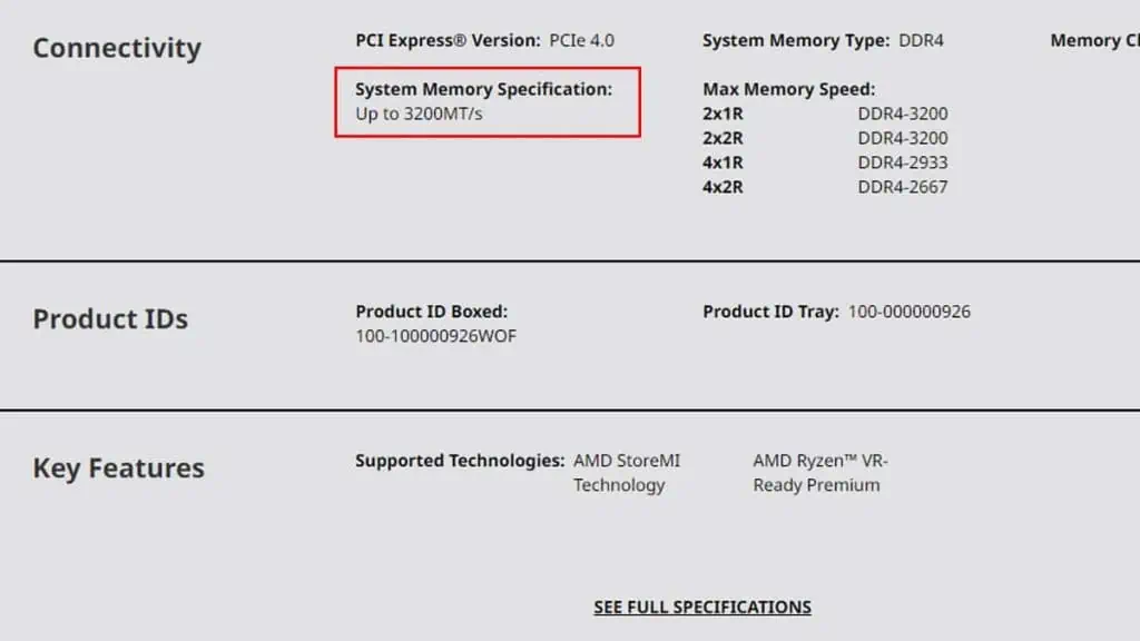 میتوانید حداکثر سرعت رم پشتیبانیشده توسط پردازنده خود را از طریق وبسایت سازنده بررسی کنید: