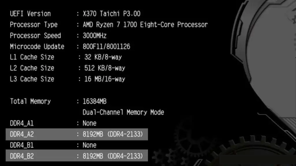 همانطور که میبینید، سرعت در داخل پرانتزهای کوچک در فیلد DDR4 قرار دارد. اگر حافظه را در پیکربندی دو کاناله اجرا میکنید، هر دو سرعت رم باید در بخشهای جداگانه نشان داده شوند.